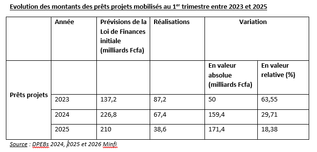 Et cette contre-performance est loin d’être isolée. Sur les deux derniers exercices, au moins, les ressources mobilisées au titre des prêts projets à l’issue du premier trimestre sont restées obstinément en retrait par rapport aux prévisions des lois de finances initiales du pays.